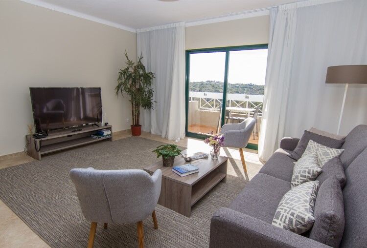 Apartamento com T1 com 2 pisos, localizado perto de Pestana Golf & Resorts - Carvoeiro. O apartamento inclui 1 quarto, 1 casa de banho, cozinha totalmente equipada, varanda, terraço e área de piscina exterior comum, ginásio e SPA.