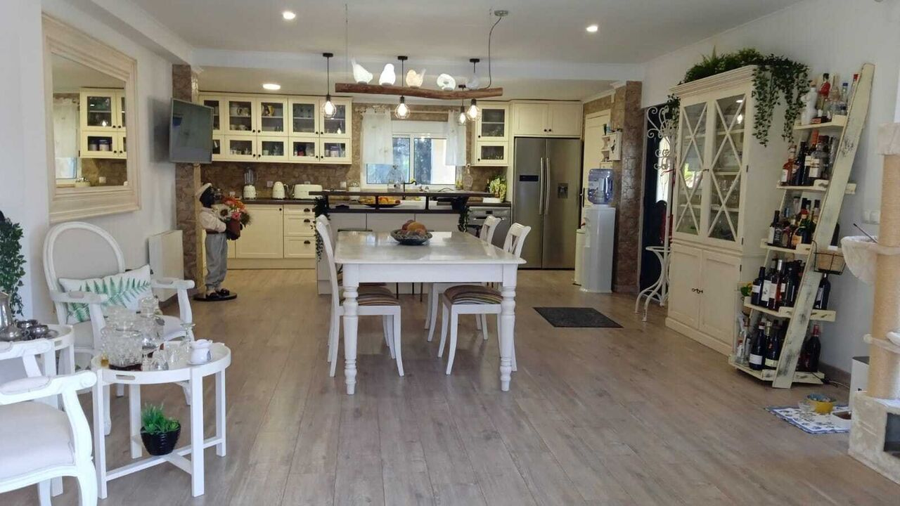 Magnificent property with a total land area of 1,651sqm and a gross construction area of 341sqm. The main villa is spread over two floors, featuring an open-plan social area on the ground floor, a living room with a fireplace, and three bedrooms, including a suite with a walk-in closet. The first floor offers a large multipurpose room, a bathroom with a hydromassage tub, and a closed sunroom terrace.