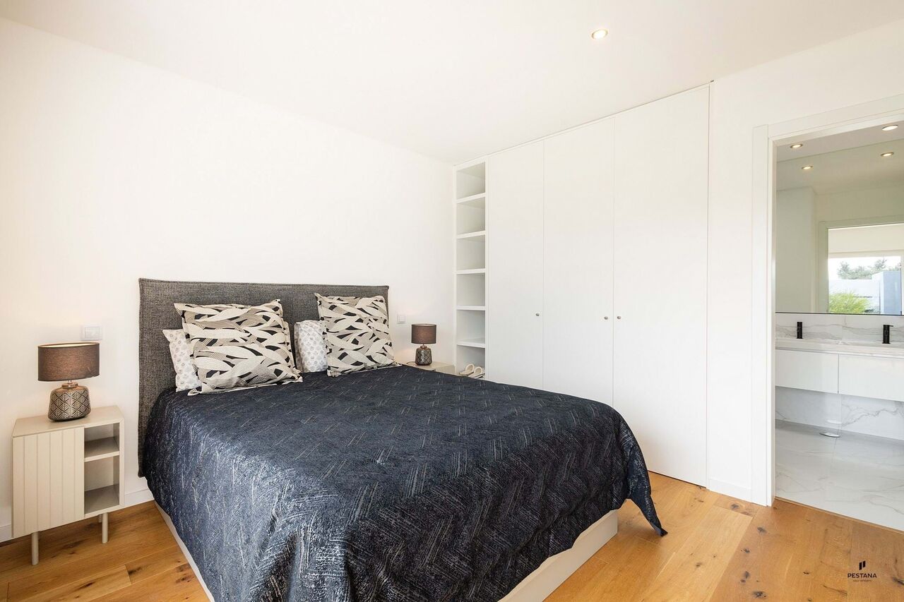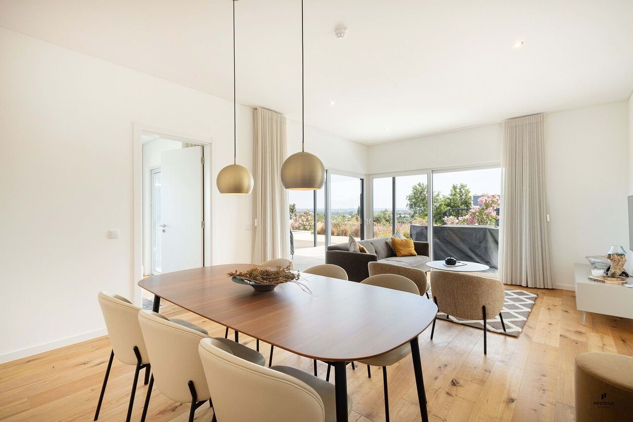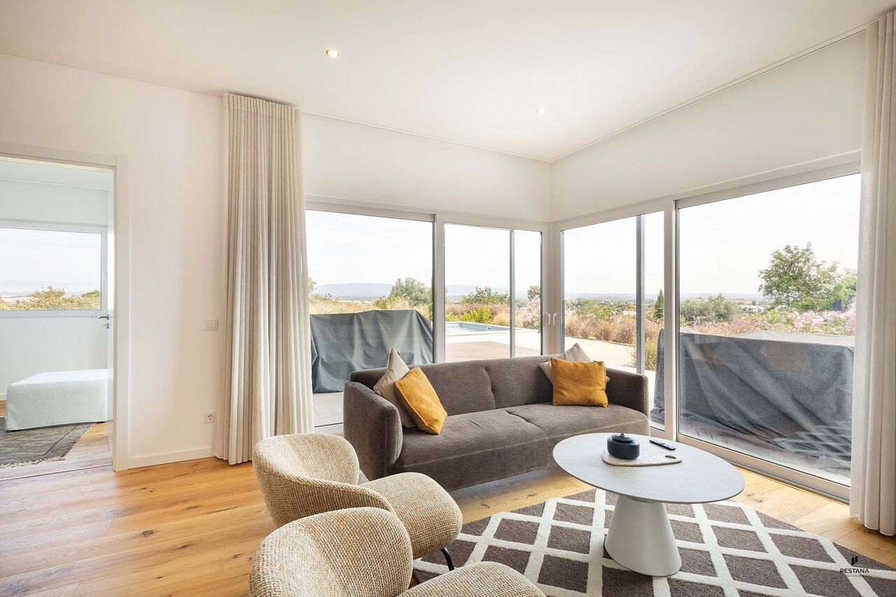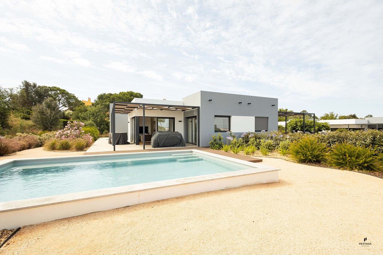 This comfortable house with contemporary architecture has a pleasant outdoor area with a swimming pool and views of the Monchique mountains.