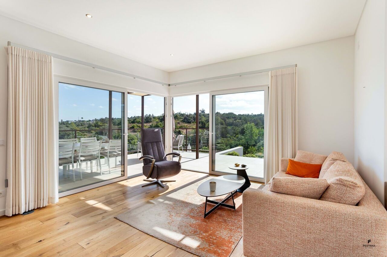 The elegantly equipped, open-plan kitchen and living room feature large windows that provide plenty of light and views of the Monchique mountains and surrounding vegetation.