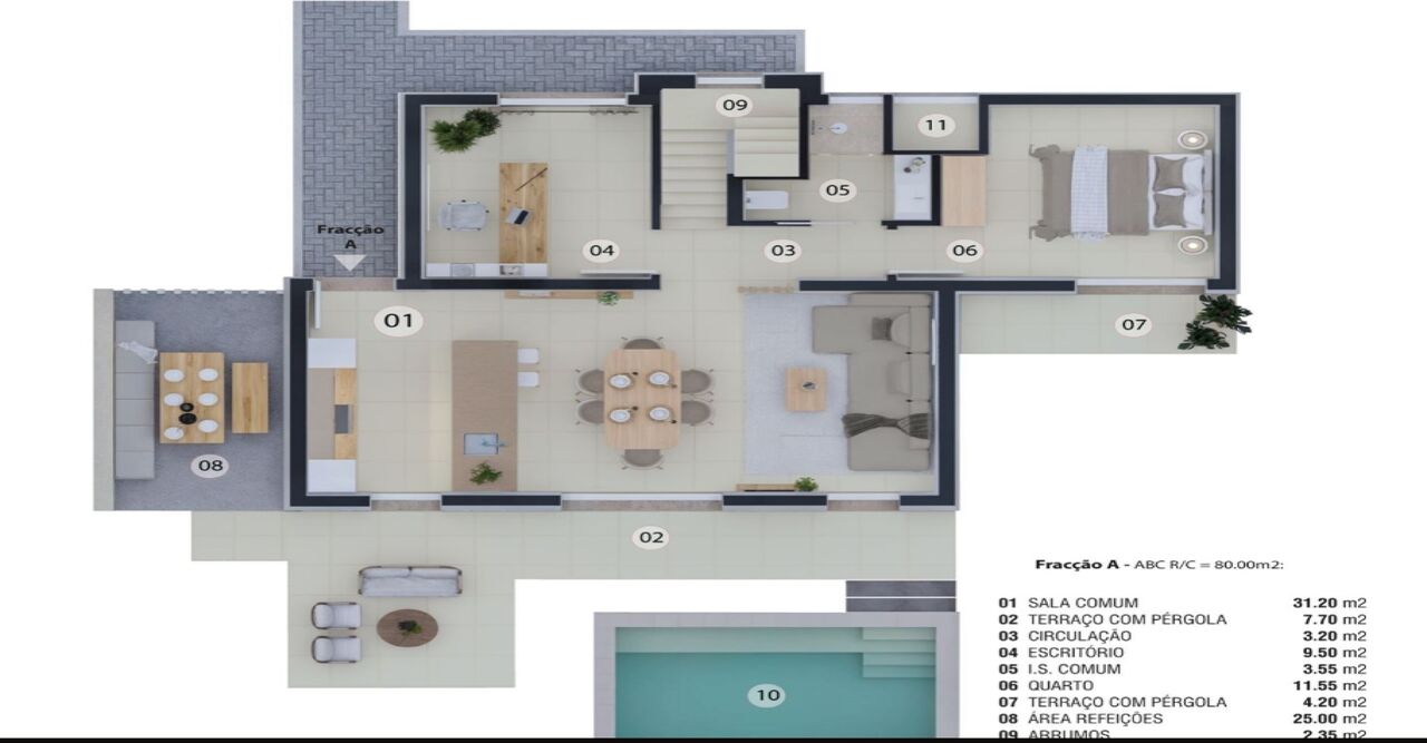 Elegante moradia T2+1 de dois pisos e piscina privativa, inserida num exclusivo conjunto de somente seis moradias.