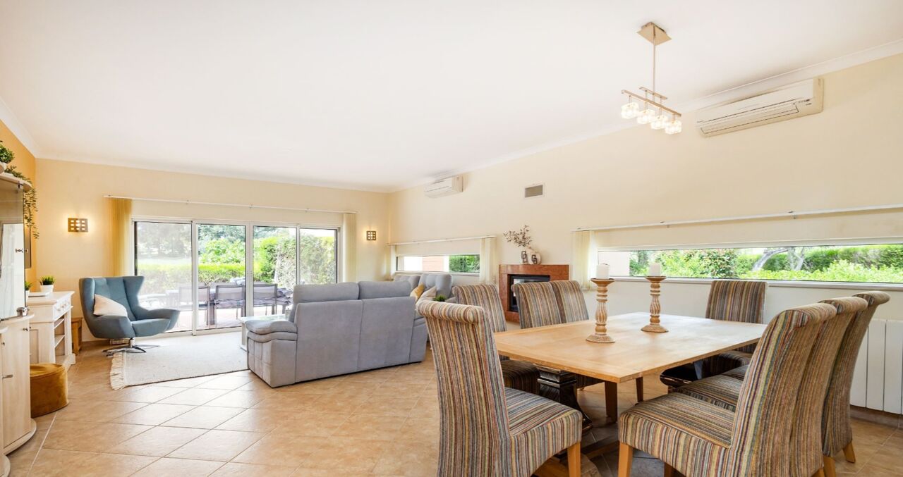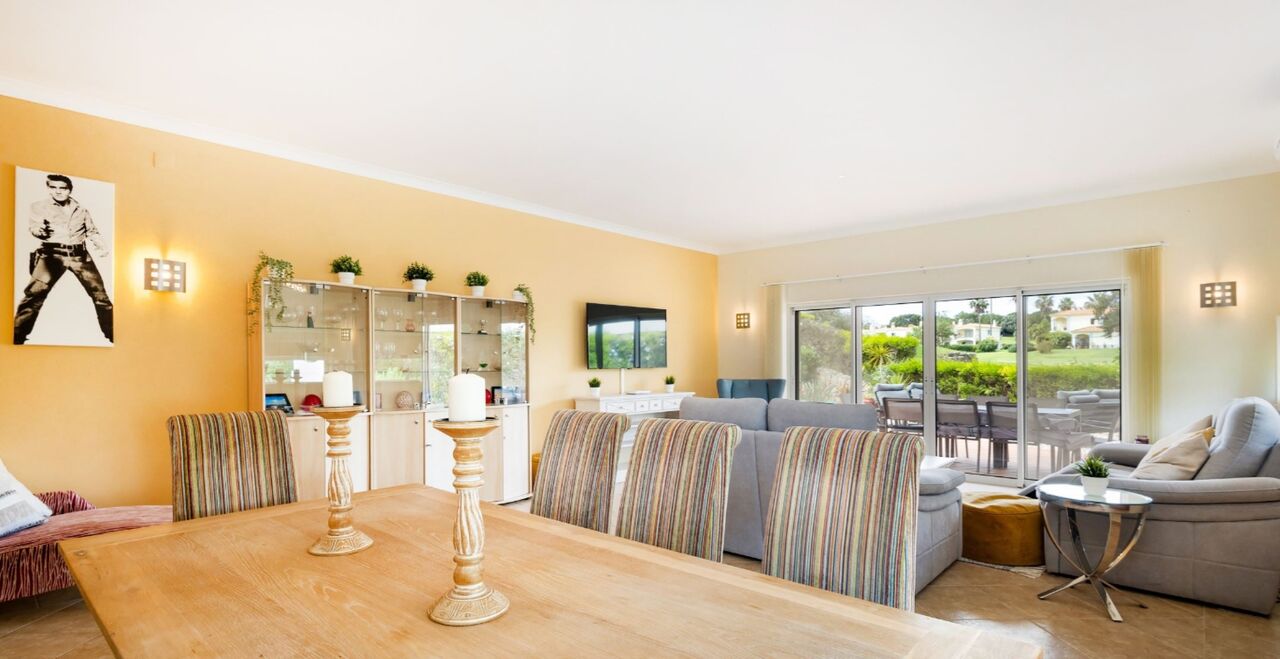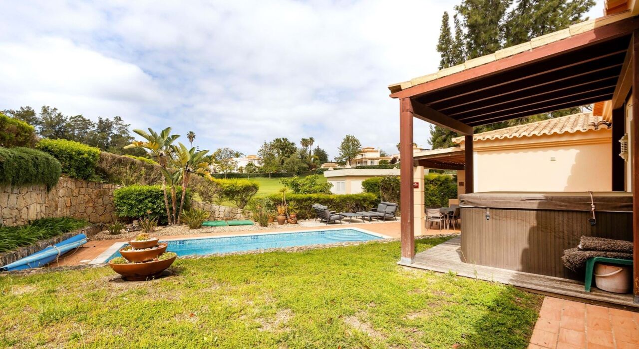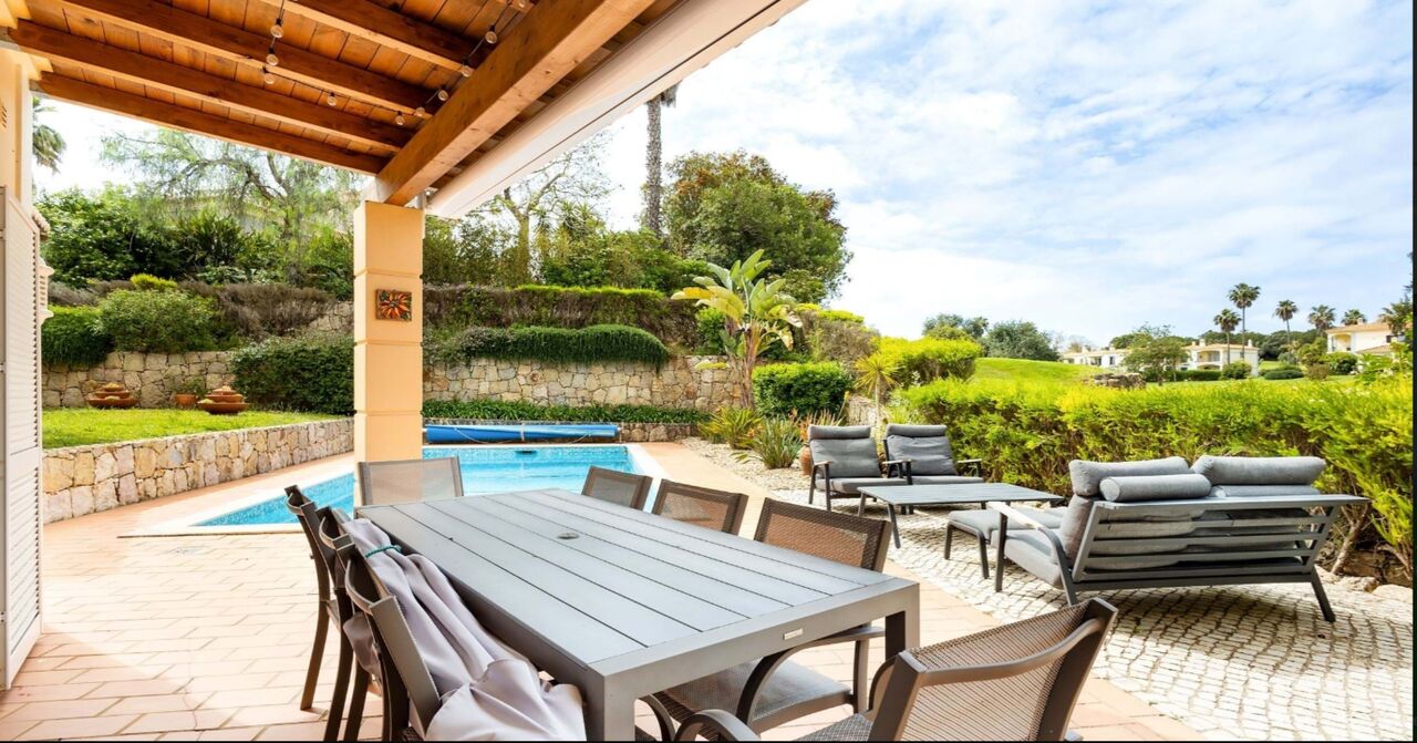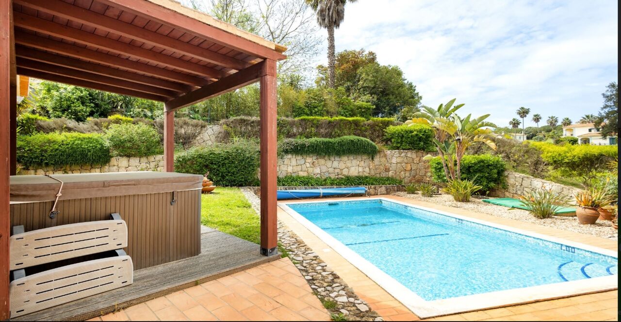 A zona de lazer exterior possui uma área dedicada ao barbecue, piscina com cobertura manual, jacuzzi e vista e acesso para o campo de golfe do Gramacho.