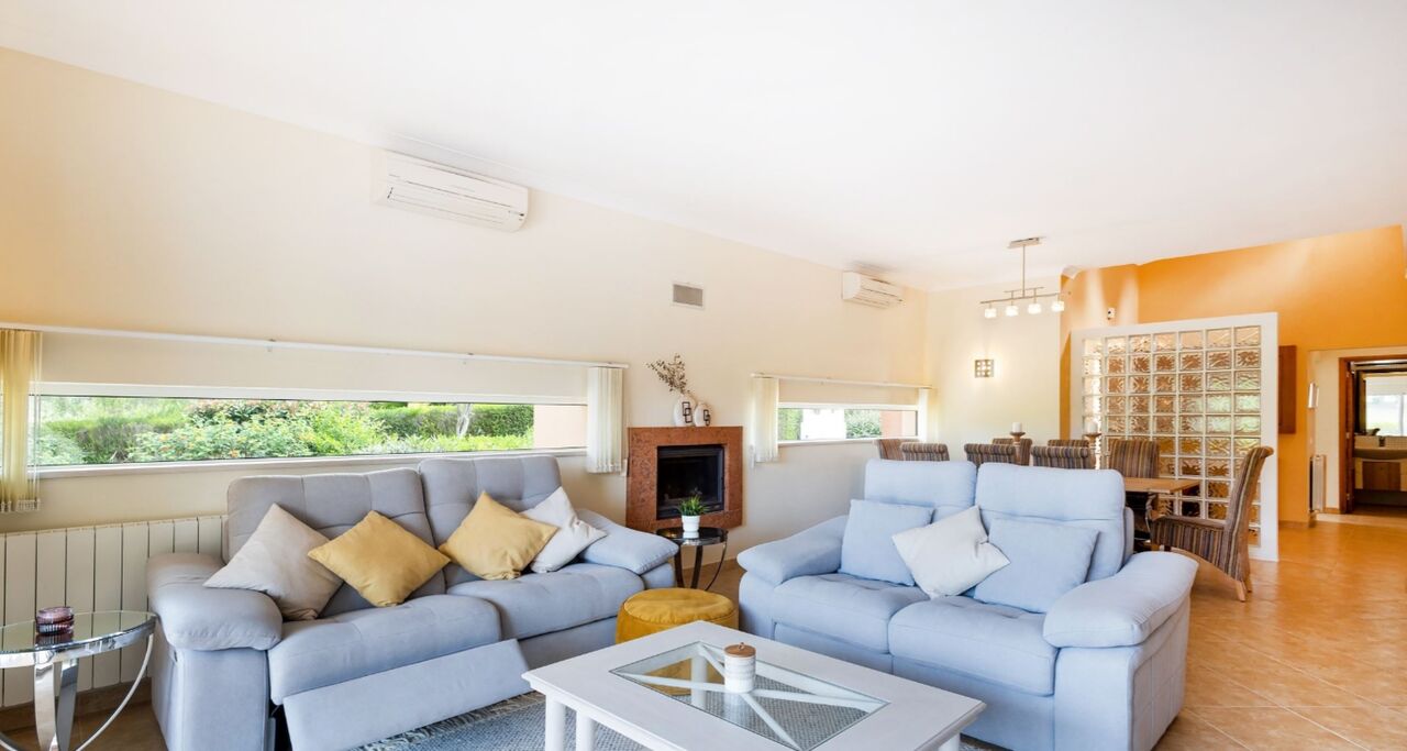 Esta espaçosa moradia está inserida num lote de 1084 metros quadrados e oferece um hall de entrada com roupeiro embutido, casa de banho social completa e acesso á ampla sala de estar com lareira e zona de lazer exterior.