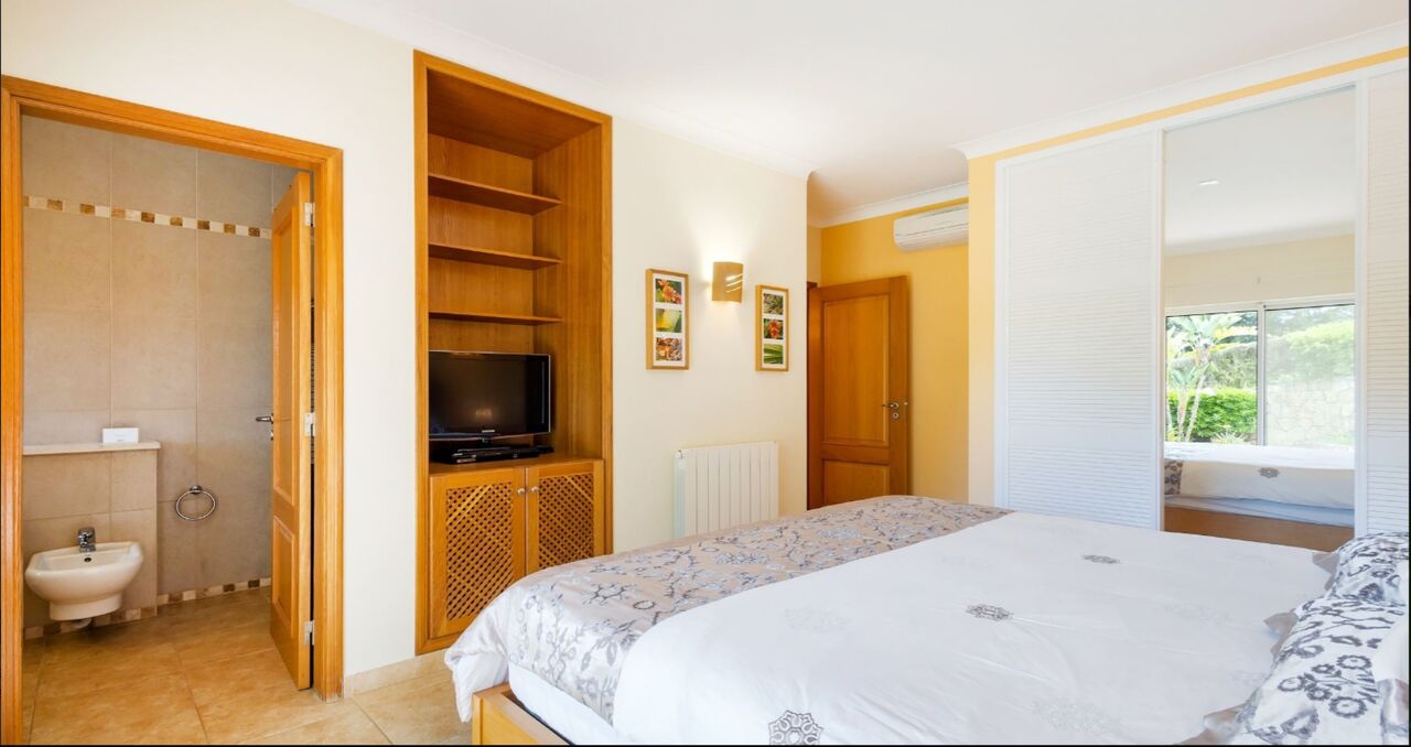 Todos os quartos têm roupeiro embutido, ar condicionado e acesso ao jardim da propriedade.