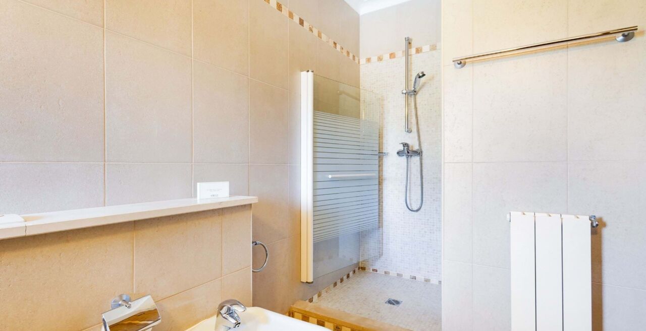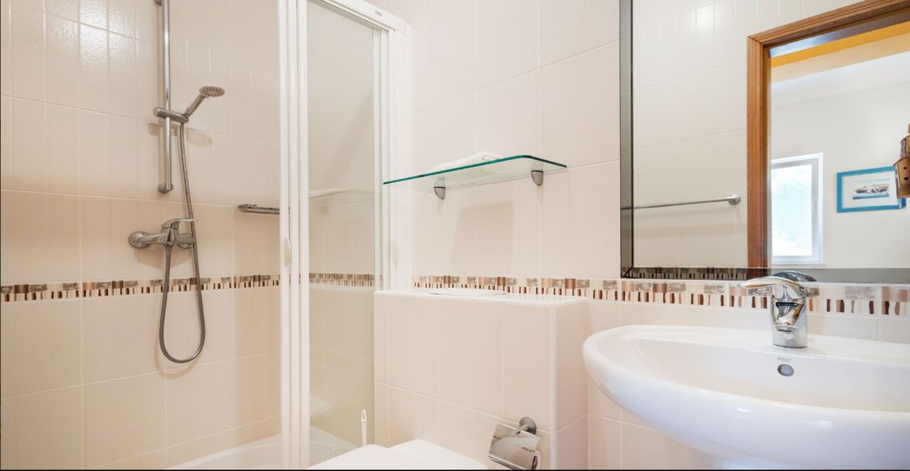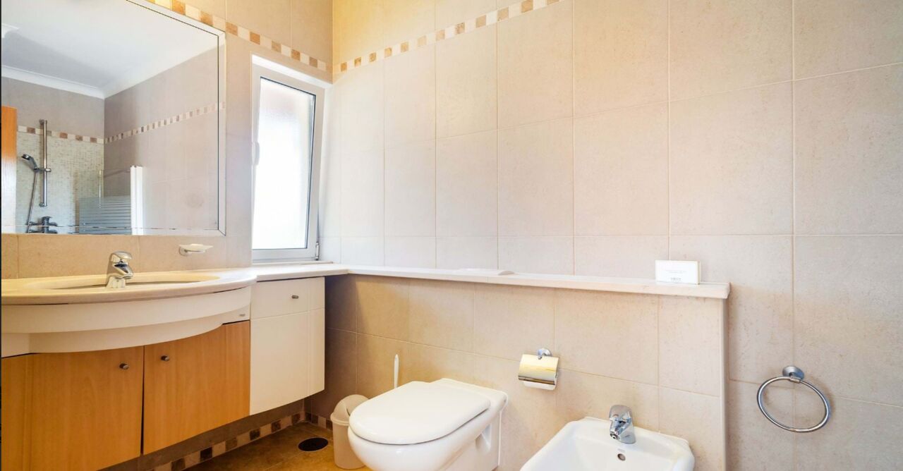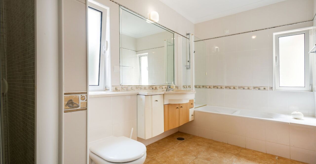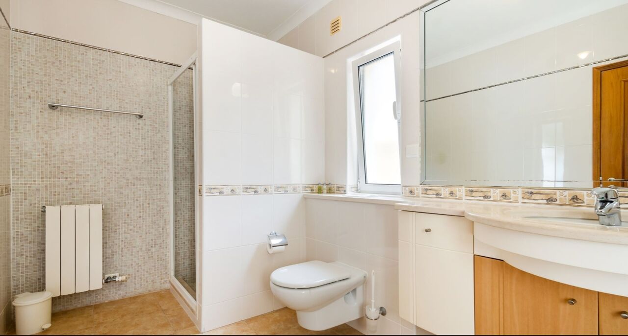 O terceiro quarto tem casa de banho em suite com duche e o último quarto é apoiado por mais uma casa de banho com duche.
